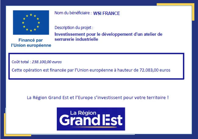 La Région Grand Est et l’Europe s’investissent pour votre territoire ! Ils investissent chez WSI France pour le développement d’un